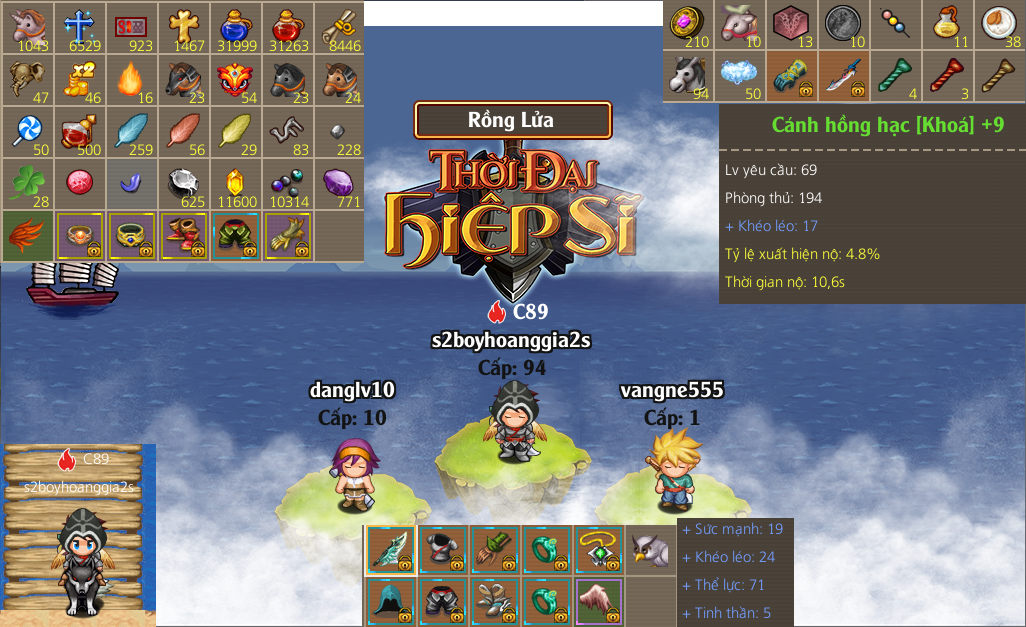 Có đt, bão độc, vk 15 đồ 13, cánh +...