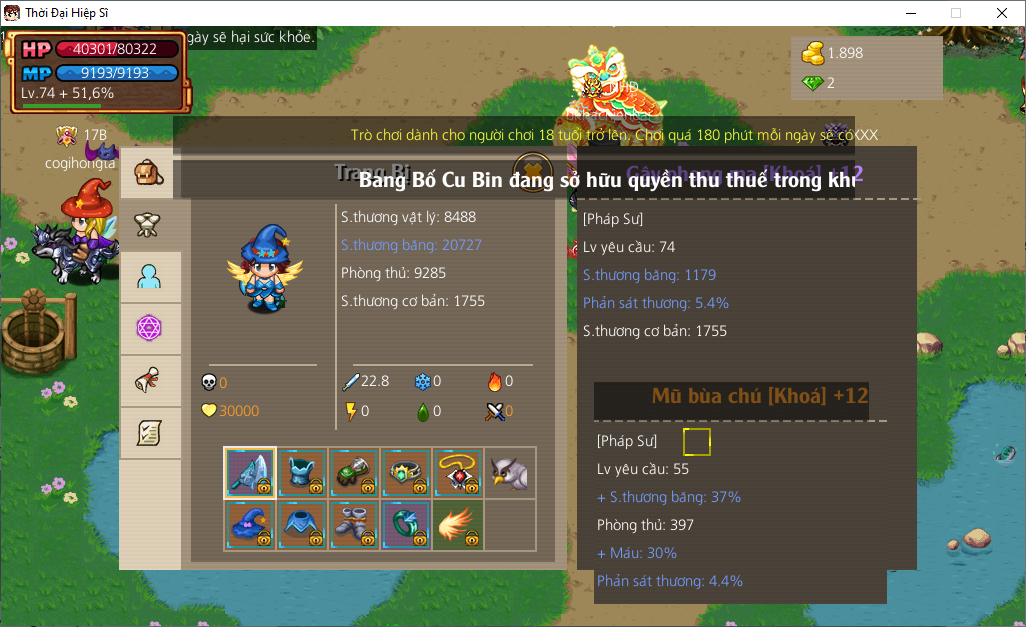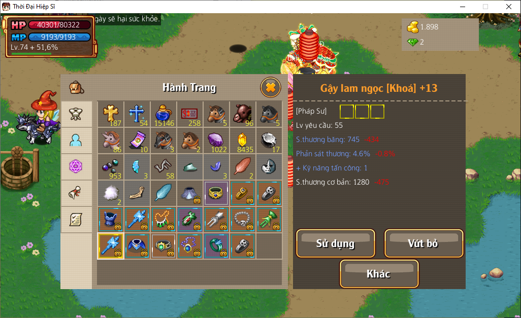 Có skill 11x, VK +15 đô +13, cánh +...