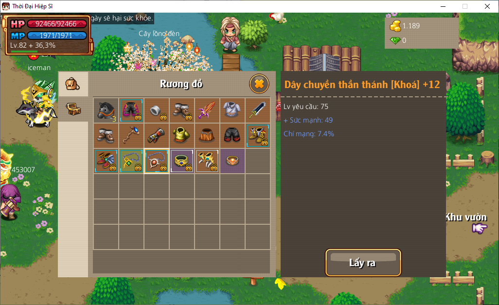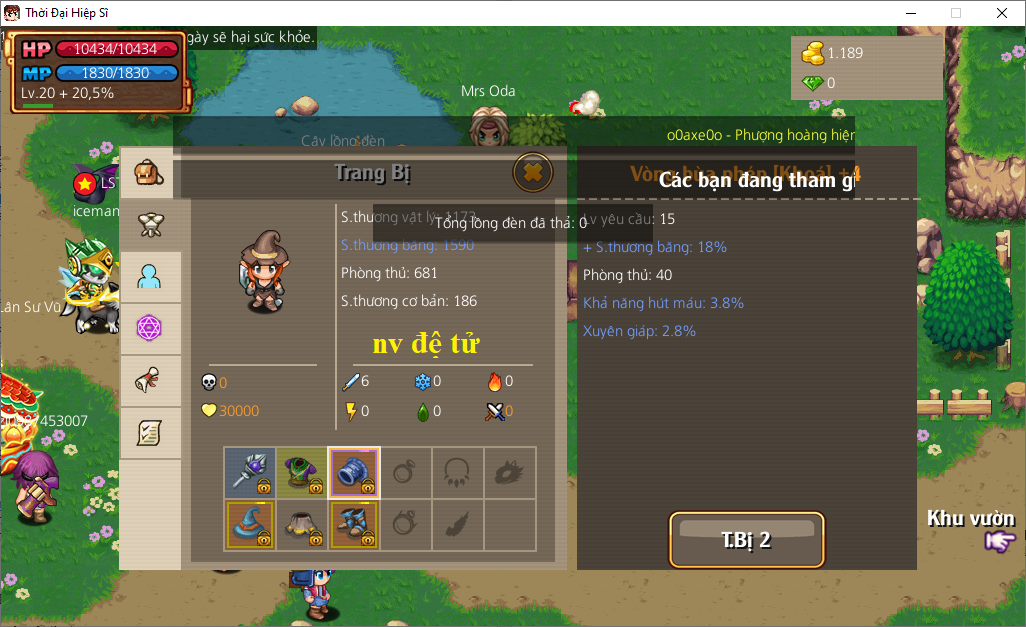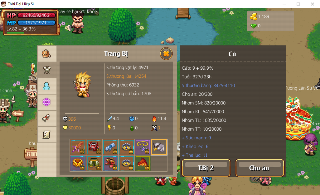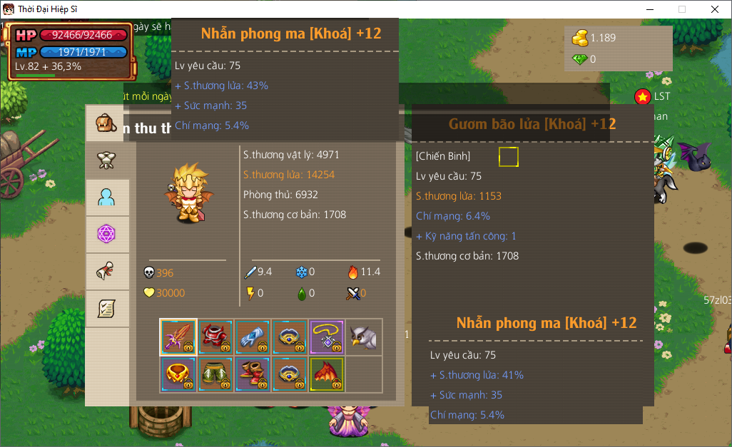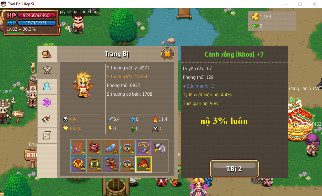Nổi bật: Có đt, vk 12 cặp nhẫn +12, cánh +7 4,4% nộ, pet cú, hành trang x2