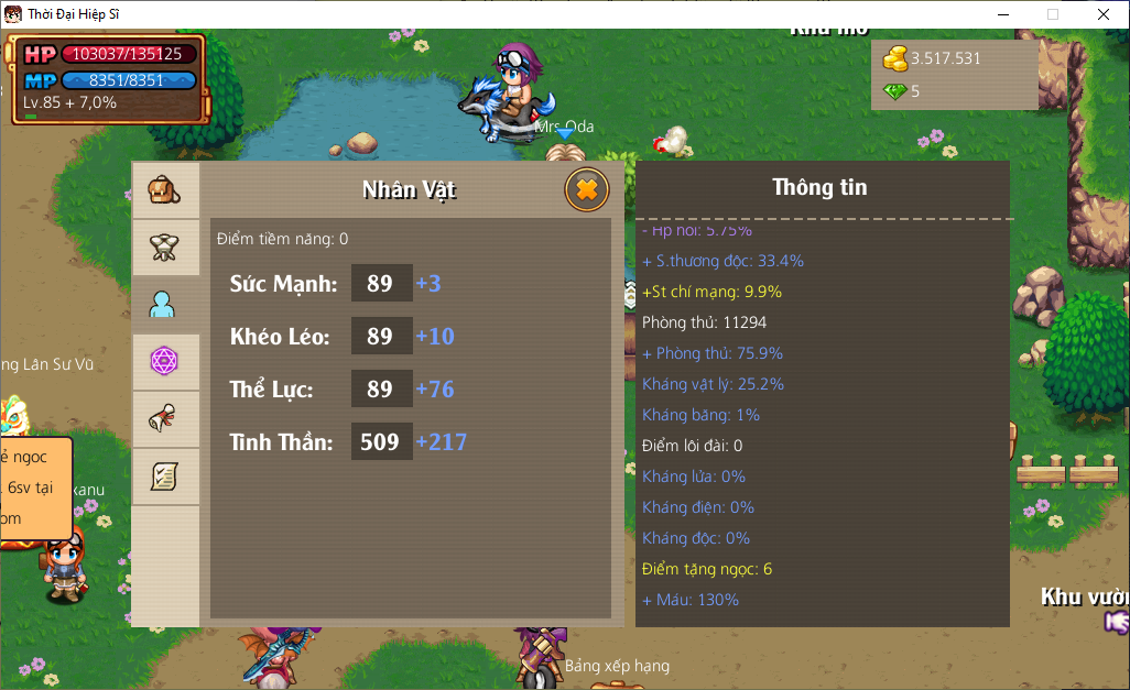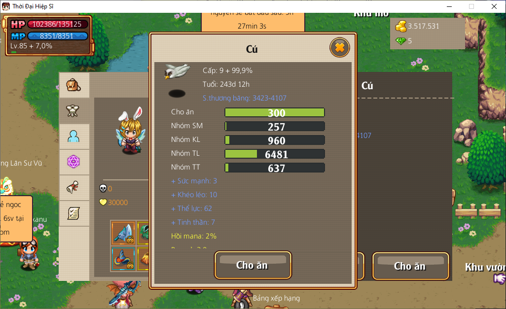 Nổi bật: Vk +15 n4 váy 13, cánh +7 3,4% nộ, 207đ ct, pet cú 62 tl, hành trang x2, nhiều kẹo pet, 3k6 tt + 1k6 klvt, km 3tr5 vàng