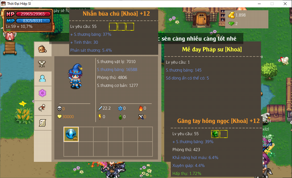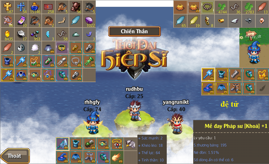 Có skill 11x, VK +15 đô +13, cánh +...