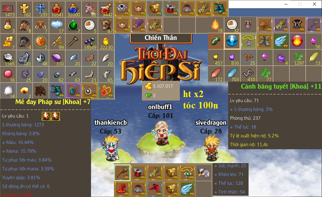 Có 2 skill 11x, vk 13 nhẫn 15, cánh...